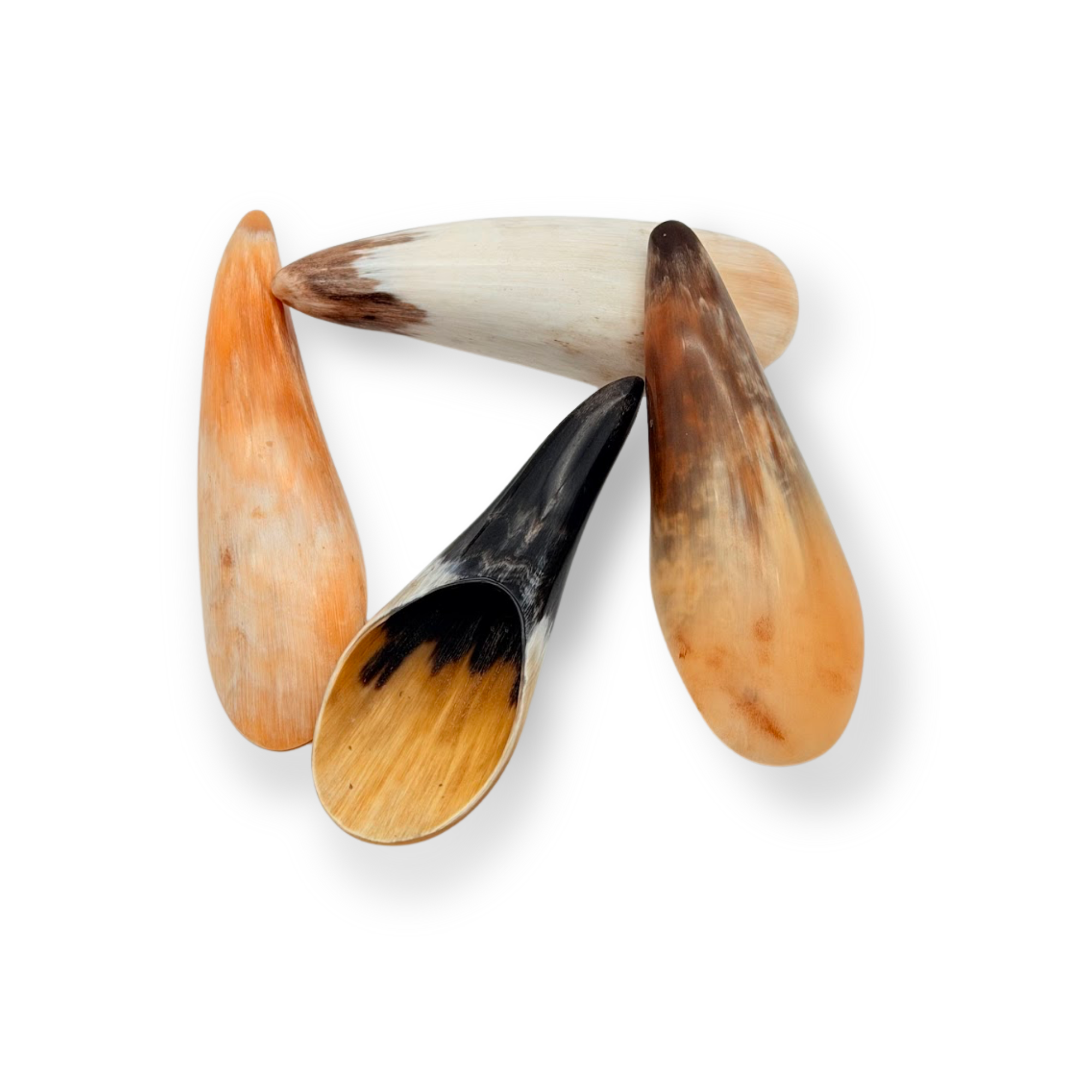 Jedes Stück wird sorgfältig ausgewählt, geformt und fein poliert. Das Produkt wird gebrauchsfertig geliefert. Aufgrund des natürlichen Materials besitzt jedes Horn eine individuelle Farbe und Maserung.